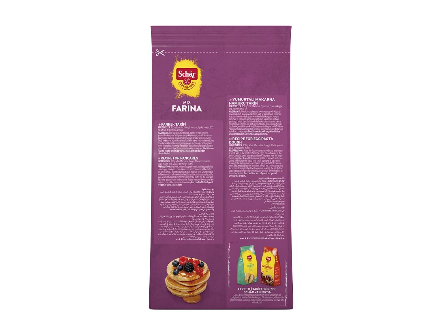 Schär unları, tüm glutensiz lezzetleriniz için ideal! Schär Mix Farina Glutensiz Un ile glutensiz mantı, yufka, börek, taze makarna, erişte, krep, beşamel sos vb soslar ve krema pişirmek hiç bu kadar basit ve lezzetli olmamıştı!